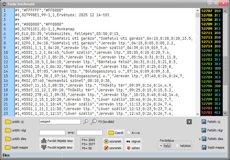 Soproni helyijárat napi vezénylés újabb verzió, itt már látod a nap típúsát is.